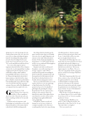 koi pond filled with clusters of exotic water iris. The pond is edged with a dense bed of Japanese primroses and sheltered by a large grove of bamboo. Guymon keeps the bamboo from spreading with an open ditch he re-digs every year with the help of three part-time assistants. Dry-stone walls, a Thai Buddha and carved granite lanterns complete the scene.