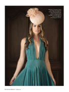 Sandra dress in turquoise ($399) by Jeanette Limas. Krista hat ($399) by Tiffany Arey Millinery. Eighteen-karat white gold, tanzanite and diamond ring ($15,000) and medium diamond necklace ($3,700) from Stewart Kingston Jewelers.