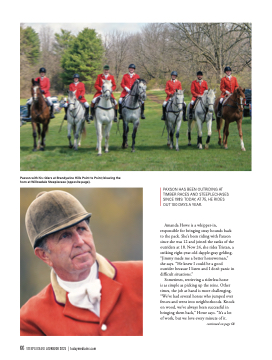 PAXSON HAS BEEN OUTRIDING AT TIMBER RACES AND STEEPLECHASES SINCE 1989. TODAY, AT 75, HE RIDES OUT 100 DAYS A YEAR.