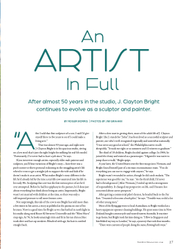 After a slow start in getting there, most of the adult life of J. Clayton Bright (the J. stands for “John”) has been lived as a successful sculptor and painter, one who’s well-recognized regionally and somewhat nationally. “I was never any good at school,” the Philadelphia native recalls sheepishly. “It took me eight or so summers and 12 winters to graduate.”