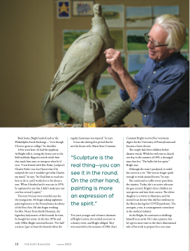 As for Bright, he continues to challenge himself as an artist. He’s also a painter, but he’s given more time to the three-dimensional side of his work to prepare for a one-man