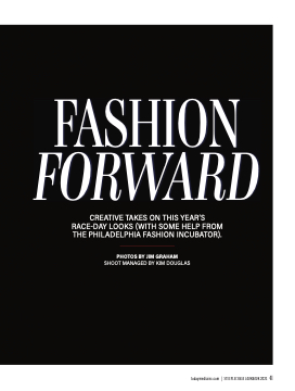 FASHION FORWARD CREATIVE TAKES ON THIS YEAR’S RACE-DAY LOOKS (WITH SOME HELP FROM THE PHILADELPHIA FASHION INCUBATOR). PHOTOS BY JIM GRAHAM SHOOT MANAGED BY KIM DOUGLAS todaymediainc.com | STEEPLECHASE LOOKBOOK 2023 41