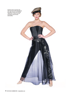 Granaté custom corset top and slim-leg trouser with hand-painted silk organza hostess skirt ($695); Tiffany Arey ”Come As You Are” straw biker cap with chain detail ($395). 48 STEEPLECHASE LOOKBOOK 2023 | todaymediainc.com