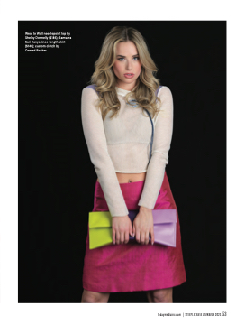 Wear to Wall needlepoint top by Shelby Donnelly ($185); Samsara Sari Aanya knee-length skirt ($140); custom clutch by Conrad Booker. todaymediainc.com | STEEPLECHASE LOOKBOOK 2023 53
