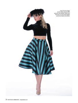 54 STEEPLECHASE LOOKBOOK 2023 | todaymediainc.com Jovan O’Connor black stretch velvet crop top ($75) and circle skirt ($525); Tiffany Arey ”Charmed, I’m Sure” black taffeta and ostrich feather hat ($590).