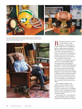 Richard Albert Vermeil is a survivor. So many of those he worked alongside—and plotted against— are gone. Vermeil refers to a ’79 Eagles staff photo in a highly organized memorabilia- filled basement shrine to his family, life and career. Only two others in the image are living. One is former NFL scout and general manager Carl Peterson, who worked with Vermeil throughout his career. He’ll present the new inductee in Canton, Ohio.