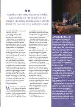 But it’s working—so far. Outside are the sprawling lavender fields, planted on gentle hilltop slopes in the shadows of a poplar- dominated new-growth forest. The rows are lovely in their precision. And though they’re dormant in winter, they look amazingly healthy. Even on this sunny day, the wind