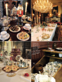 (Clockwise from top left) Tea and baked sweets are among the delicacies at Historic Odessa; the dining room at Nemours; a curator used real oyster shells for Winterthur’s display; cookies and Jello desserts tempt the eyes at Hagley Museum.