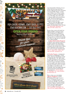 At Mama Maria’s Italian Restaurant in Milford, owners Salvatore and Franco Laragione evaluate the seafood that’s freshest and best on the market before coming up with a holiday menu of dishes. Franco spreads the word to patrons in posts on the restaurant’s Facebook page. 945-A N. Dupont Blvd., Milford, Del., (302) 422-2661, mamamaria.com.