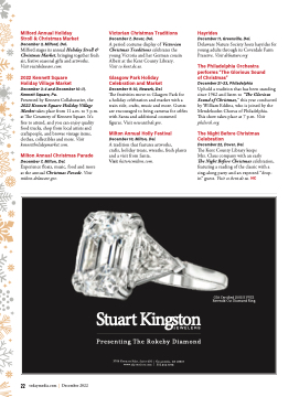 Presented by Kennett Collaborative, the 2022 Kennett Square Holiday Village Market takes place from 11 a.m. to 5 p.m. at The Creamery of Kennett Square. It’s free to attend, and you can enjoy quality food trucks, shop from local artists and craftspeople, and browse vintage items, clothes, collectibles and more. Visit kennettholidaymarket.com.