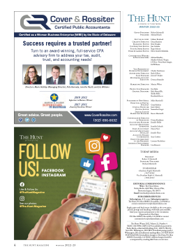 Single copies and back issues: Available at the cover price, plus $2 postage and handling, with bulk rates available. Mail your request and payment to the Circulation Department at The Hunt,