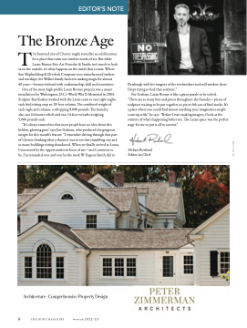 ihe battered city of Chester might seem like an odd location for a place that turns out timeless works of art. But while Laran Bronze Fine Art Foundry & Studio isn’t much to look