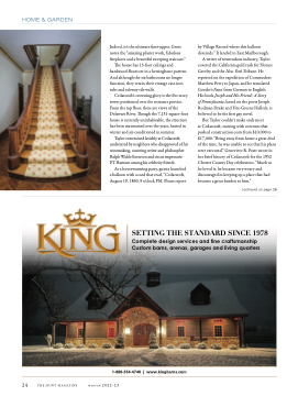 at Cedarcroft, starting with overruns that pushed construction costs from $10,000 to $17,000. “Being away from home a great deal of the time, he was unable to see that his plans were executed,” Genevieve R. Pratt wrote in her brief history of Cedarcroft for the 1952 Chester County Day celebration. “Much as he loved it, he became very weary and discouraged in keeping up a place that had become a great burden to him.”