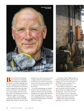 On this day, J. Clayton Bright has driven in from his Unionville studio to witness his work being poured. “I never try to redo a piece at the foundry,” he says, noting that it’s not a place to extend the creative process.