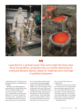 Laran Bronze is perhaps busier than some might like these days. Since the pandemic, production has run months behind due to continued demand, delivery delays for materials and a shortage of qualified employees.