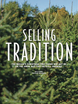 SELLING TRADITION 6 6 6 6T r2 TH 3 H E THE REGION’S CHRISTMAS TREE FARMS MAY NOT BE ON THE GROW, BUT THEY’RE STILL GROWING. EH HU UN NT TM MA AG GA AZ ZI I N NE Ew wi in nt t e er 2 0 02 22 2- -2 2 3 BY J.F. PIRRO PHOTOS BY JIM GRAHAM