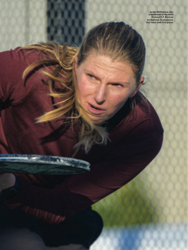 Jaclyn Williamson rips a backhand at the 2022 Richard R.P. Morrow Invitational Tournament. Her team took first place. TheHuntMagazine.com 73