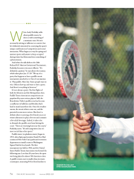 Richard R.P. Morrow Invitational Tournament, Podolsky becomes even more effusive. “It’s definitely a passion,” he says about the tourney, which takes place Jan. 27-29. “We say it’s a party that happens to have a paddle tennis tournament attached to it. One of our mantras is: ‘Play paddle. Have fun.’ Some people want to win. Others show up and want to have a party. And there’s everything in between.”