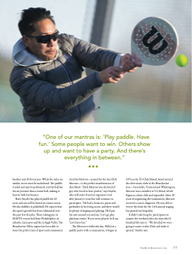 Barry Snyder has played paddle for 45 years and can still be found on tennis courts. He also dabbles in pickleball. He reports that the sport’s growth has been substantial over the past few decades. Those taking part in MAPTA events hail from Philadelphia, its suburbs, Lancaster and the Lehigh Valley. The Brandywine Valley region has been able to hone the perfect mix of sport and community.