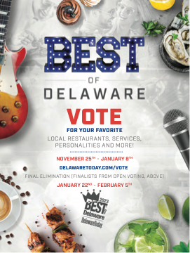 VOTE FOR YOUR FAVORITE LOCAL RESTAURANTS, SERVICES, PERSONALITIES AND MORE! NOVEMBER 25TH - JANUARY 8TH DELAWARETODAY.COM/VOTE FINAL ELIMINATION (FINALISTS FROM OPEN VOTING, ABOVE) JANUARY 22ND - FEBRUARY 5TH