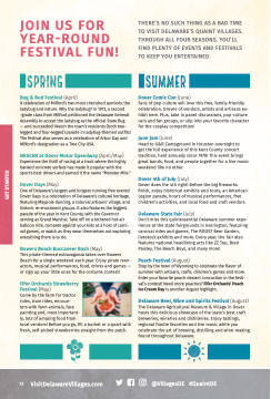 THERE’S NO SUCH THING AS A BAD TIME TO VISIT DELAWARE’S QUAINT VILLAGES. THROUGH ALL FOUR SEASONS, YOU’LL FIND PLENTY OF EVENTS AND FESTIVALS TO KEEP YOU ENTERTAINED.