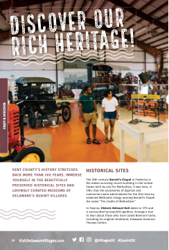 KENT COUNTY’S HISTORY STRETCHES BACK MORE THAN 300 YEARS. IMMERSE YOURSELF IN THE BEAUTIFULLY PRESERVED HISTORICAL SITES AND LOVINGLY CURATED MUSEUMS OF DELAWARE'S QUAINT VILLAGES.