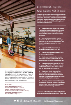 the history of our state’s governance and the remarkable Delawareans who played a role in it. Oriented around The the nation to ratify the new U.S. Constitution, the park comprises the following sites: