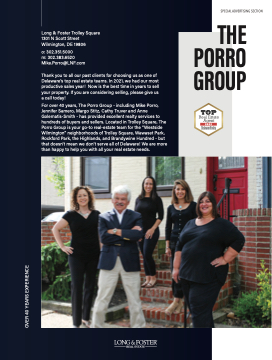 For over 40 years, The Porro Group - including Mike Porro, Jennifer Samero, Margo Stitz, Cathy Truver and Anne Golematis-Smith - has provided excellent realty services to hundreds of buyers and sellers. Located in Trolley Square, The Porro Group is your go-to real-estate team for the “Westside Wilmington” neighborhoods of Trolley Square, Wawaset Park, Rockford Park, the Highlands, and Brandywine Hundred - but that doesn’t mean we don’t serve all of Delaware! We are more than happy to help you with all your real estate needs.