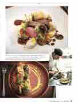 (Clockwise from opposite page) Peanut-glazed pork cheeks with jasmine rice, egg, peas, and soy; ribeye with cauliflower, oyster mushrooms and a chimichurri-and-truffle vinaigrette; owner Scott Morozin in the kitchen; pineapple-and-jalapeño-glazed lamb kofta with Washington State chic peas, yellow curry vinaigrette and pickled jalapeño.