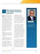 delve into the topic of telemedicine. In 2015, the Medical Society of Delaware (MSD), working with key organizations including the Delaware Telehealth Coalition and our legislators, crafted language to codify telehealth and telemedicine into state law. Our unique and comprehensive bill has been used