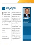 on September 7, 2017, was entitled, “Establishing the Benchmark.” This summit hosted nationally-renowned speakers who provided broad overviews of US health care spending, approaches to curtailing health care spending growth, and examples of