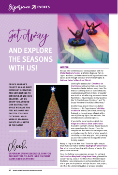 PRINCE GEORGE’S COUNTY HAS AS MANY DIFFERENT ACTIVITIES AND EXPERIENCES TO DISCOVER AS WE HAVE SEASONS. LET US SHOW YOU AROUND OUR DESTINATION WHILE WE MAKE YOU FEEL WELCOME AND EXCITED FOR EACH OCCASION. YOUR VIEW OF SEASONAL EVENTS WILL NEVER BE THE SAME!