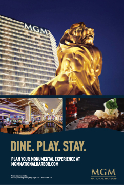 DINE. PLAY. STAY. PLAN YOUR MONUMENTAL EXPERIENCE AT MGMNATIONALHARBOR.COM Please play responsibly. For help, visit mdgamblinghelp.org or call 1-800-GAMBLER.