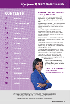Published on behalf of Experience Prince George’s by: Today Media Custom Communications 1014 West 36th Street, Baltimore, MD 21211 • 410-828-0120 • www.todaymediacustom.com Advertising Sales: Susan Dumont - susan.dumont@todaymediacustom.com
