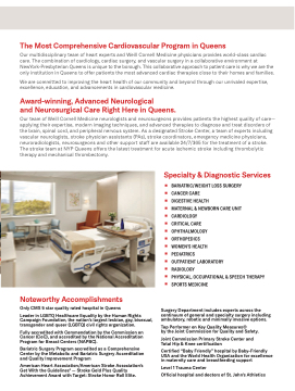 Our multidisciplinary team of heart experts and Weill Cornell Medicine physicians provides world-class cardiac care. The combination of cardiology, cardiac surgery, and vascular surgery in a collaborative environment at NewYork-Presbyterian Queens is unique to the borough. This collaborative approach to patient care is why we are the only institution in Queens to offer patients the most advanced cardiac therapies close to their homes and families.