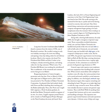 Landess, who had a B.S. in Ocean Engineering and experience in the Navy Civil Engineering Corps, was hired in late 1994. He recalls arriving at the terminal his first day in a jacket and tie but leaving covered in concrete, dust and mud. Once Steve started doing construction and renovation projects, company management began getting a lot more compliments about the terminal. Steve would go on to earn a master’s degree in Civil Engineering from Johns Hopkins University in 1999.