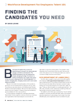 The DOL offers a wealth of resources for both job seekers and employers (dol.ny.gov/services-businesses) and Kleiner says something new is in the offing: a Virtual Career Center, the first of its kind in the state. Kleiner has been involved in early testing, and “it’s the best thing any of us have seen, really,” he says. “It lets you filter information on a pretty granular level — by ZIP codes, education levels. Indeed has something similar, but that’s pretty unusual for a public institution.”