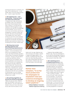 4. Not putting together an attractive benefits package. “Wages are going bonkers,” Madison says, and employers need caution in both directions. “You don’t want below- market so they don’t even look at you, but you also must be cautious on the