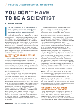 people to complement their business objectives. Gibbons notes that the Bioscience Industry Task Force has businesses of all sizes on board, from the smallest startups to industry leader Regeneron, which employs approximately 4,400 workers in the county.