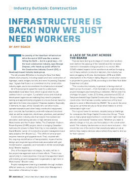 “The construction industry, in general, is facing a lack of talent across the board — from field labor to superintendents, project managers and everything in between. We’ve seen this shortage for years,” notes JD Summa, president and CEO of Tarrytown-based Kings Capital Construction Group, a heavy construction firm that was recently named one of the best places to work in Westchester by 914INC. “As a result, the price has gone up tremendously as far as what it takes to entice skilled labor right now.”