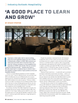 “There’s no doubt that the pandemic hurt the hospitality sector the most,” notes Dr. Marsha Gordon, the president and CEO of the Business Council of Westchester, the county’s largest business membership organization, representing more than 1,000 members from various sectors. “Omicron hit [this sector] in a really cruel way around Christmas and New Year’s when there are so many holiday parties and dinners, but we are so pleased to see people going back to restaurants and other segments of the hospitality sector,” she says.