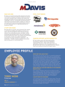 Terry stated, “Working at M. Davis has helped me build a long-standing career. The company supported me through all the apprenticeship classes. I have a really good core group that I work with, and through supporting each