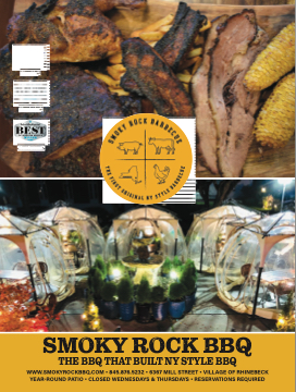 WWW.SMOKYROCKBBQ.COM • 845.876.5232 • 6367 MILL STREET • VILLAGE OF RHINEBECK YEAR-ROUND PATIO • CLOSED WEDNESDAYS & THURSDAYS • RESERVATIONS REQUIRED