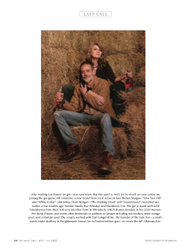 After reading our feature on gin—you now know that this spirit is, well, in! So much so even celebs are joining the gin game. MF Libations, a new brand from local actors Hilarie Burton Morgan (“One Tree Hill” and “White Collar”) and Jeffrey Dean Morgan (“The Walking Dead” and “Supernatural”) launched two bottles a few months ago: Bonfire Smoky Rye Whiskey and Blackberry Gin. The gin is made with wild blackberries from their 100-acre Mischief Farm in Rhinebeck, which Burton detailed in her 2020 memoir The Rural Diaries, and seven other botanicals in addition to juniper including red rooibos, bitter orange peel, and coriander seed. The couple worked with Eral Gokgol-Kline, the founder of The Vale Fox—a small- batch estate distillery in Poughkeepsie known for its limited-edition gins—to create the MF Libations line.