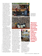 to roast 1.5 kilograms (2.5 pounds) of beans, but small enough to fit three people. And there’s plenty of style to go along with the roastery’s level of efficiency, too. Complete with their much- asked about mosaic featuring the company name on the outside of the trailer, and the tin-ceiling on the inside that draws attention as customers await their brew, to the plants hanging in their pick-up-and- order window or framing the truck in pots on the ground, Mercurial Coffee definitely has a vibe and a creative, earthy aesthetic.