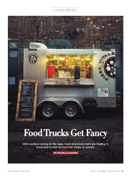 GOOD STUFF Food Trucks Get Fancy With outdoor dining all the rage, more and more chefs are trading in brick-and-mortar kitchens for meals on wheels. BY MICHELLE HAINER photo courtesy of pizza vitale march – may 2022 valleytable.com 13