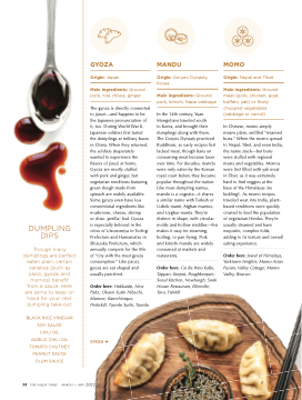 base of the Himalayas (no kidding!). As momo recipes traveled west into India, plant- based renditions were quickly created to feed the population of vegetarian Hindus. They’re usually steamed and have exquisite, complex folds, adding to its texture and overall eating experience.