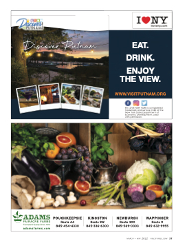 EAT. DRINK. ENJOY THE VIEW. WWW.VISITPUTNAM.ORG adamsfarms.com POUGHKEEPSIE Route 44 845-454-4330 KINGSTON Route 9W 845-336-6300 NEWBURGH Route 300 845-569-0303 WAPPINGER Route 9 845-632-9955 march – may 2022 valleytable.com 55