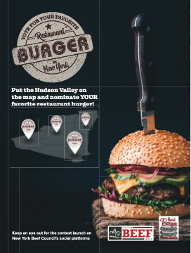 Put the Hudson Valley on the map and nominate YOUR f f a av vo o r r i it t e er r e es st t a a Keep an eye out for the contest launch on New York Beef Council’s social platforms u ur ra an nt tb bu u r r g g e er r ! !