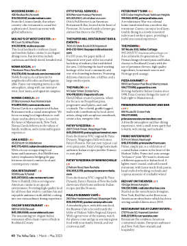 845.570.5656; primowaterfront.com Primo, simply put, is a celebration of coastal Italian cuisine in the heart of the Hudson Valley. Primo isn’t your average “red sauce” joint. We want to showcase